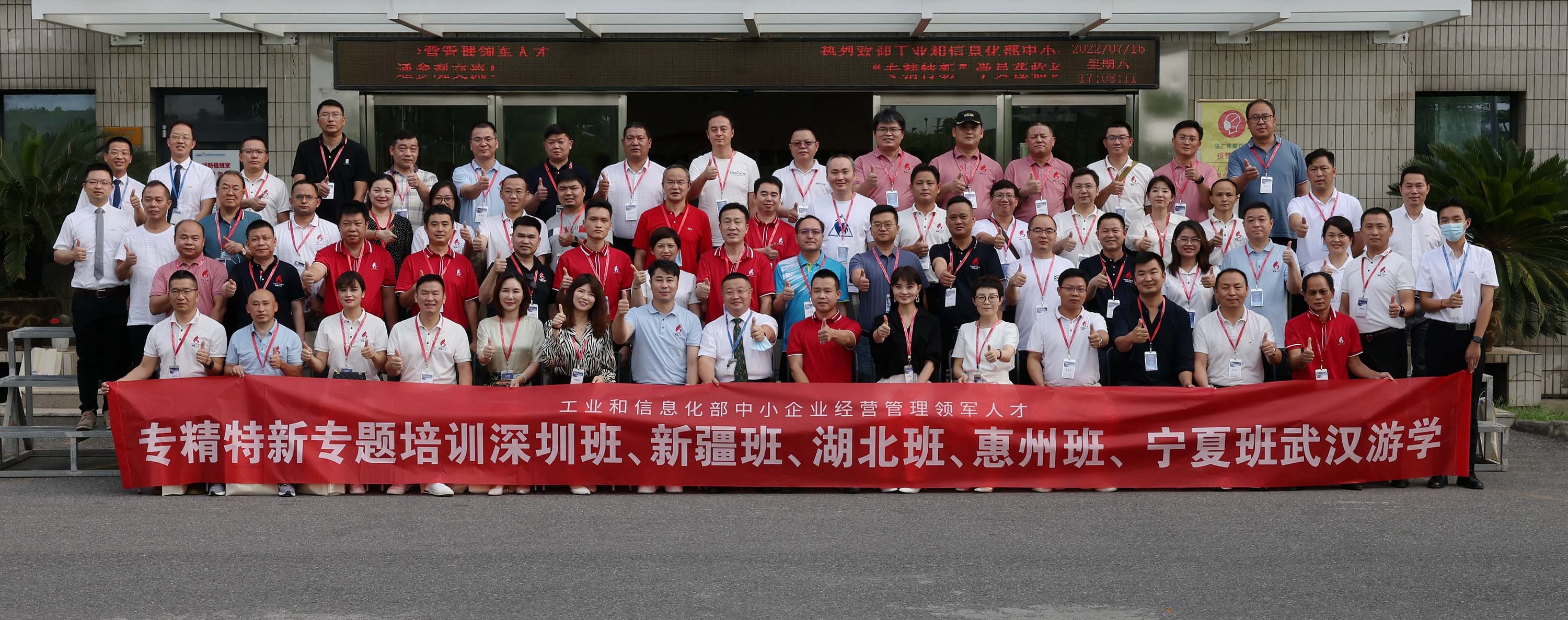 2022年7月16日下午,烈日炎炎,暑气正盛,九游会老哥园区群贤毕至,蓬荜生辉。由国家工业和信息化部主办的经营管理领军人才“专精特新”学员班(深圳、新疆、湖北、惠州、宁夏)一百多位企业家莅临九游会老哥参观交流,公司董事长兼总裁皮亚斌先生及全体高管人员全程接待。